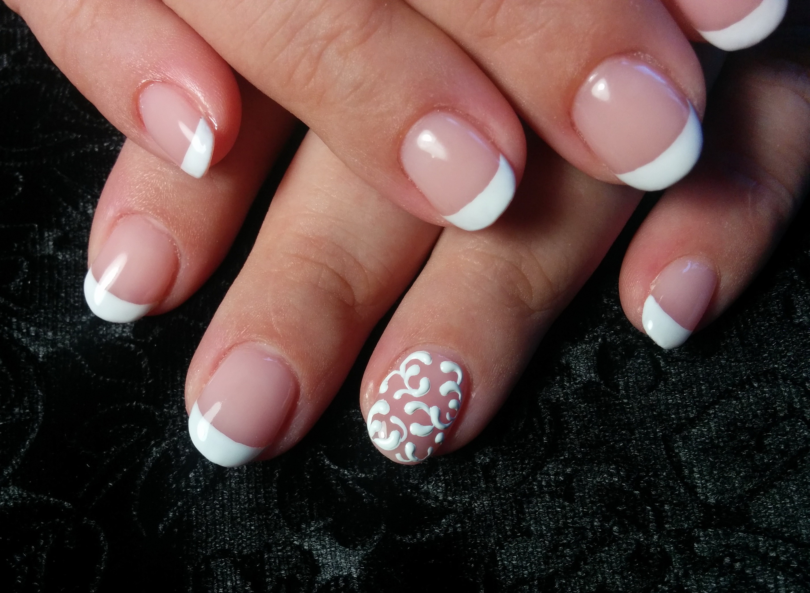 получилось очень нежно. с лёгким рисунком. нейтральный маникюр тоже очень красиво!