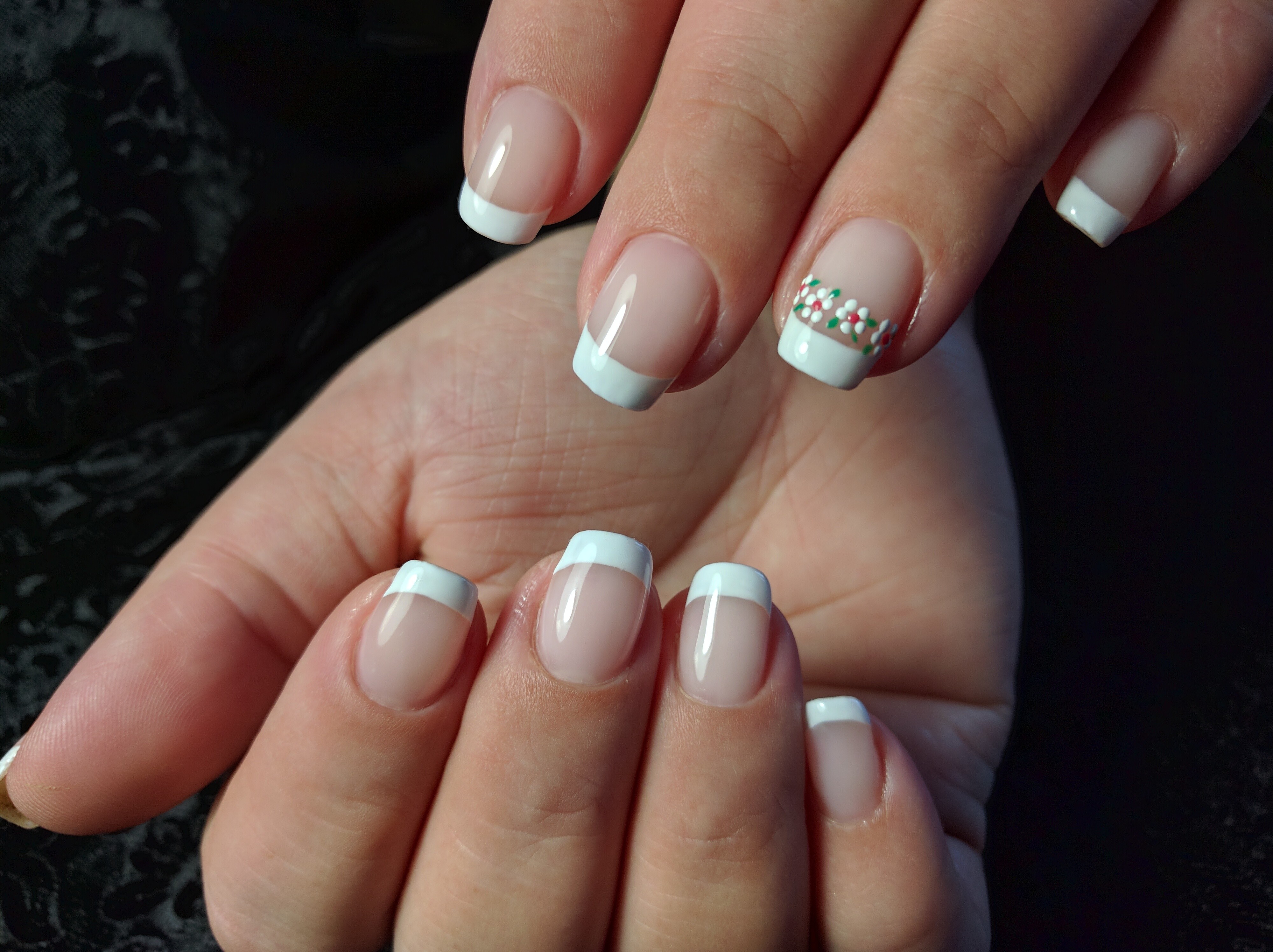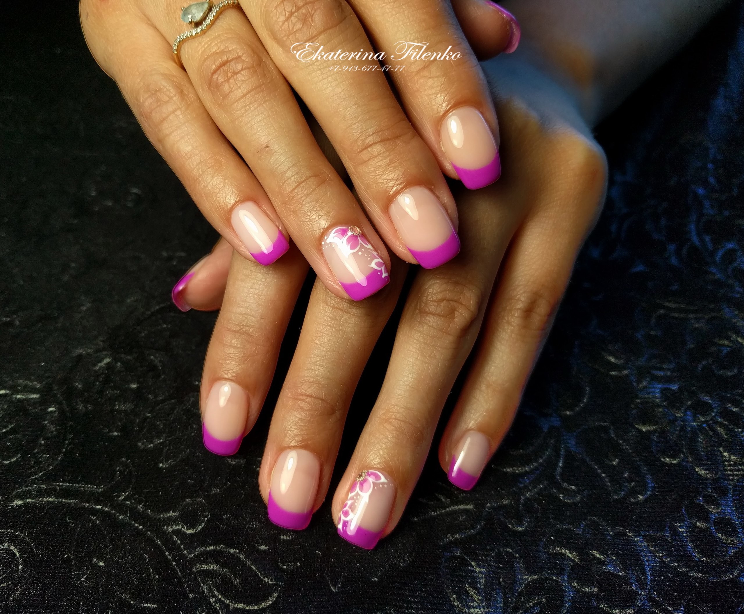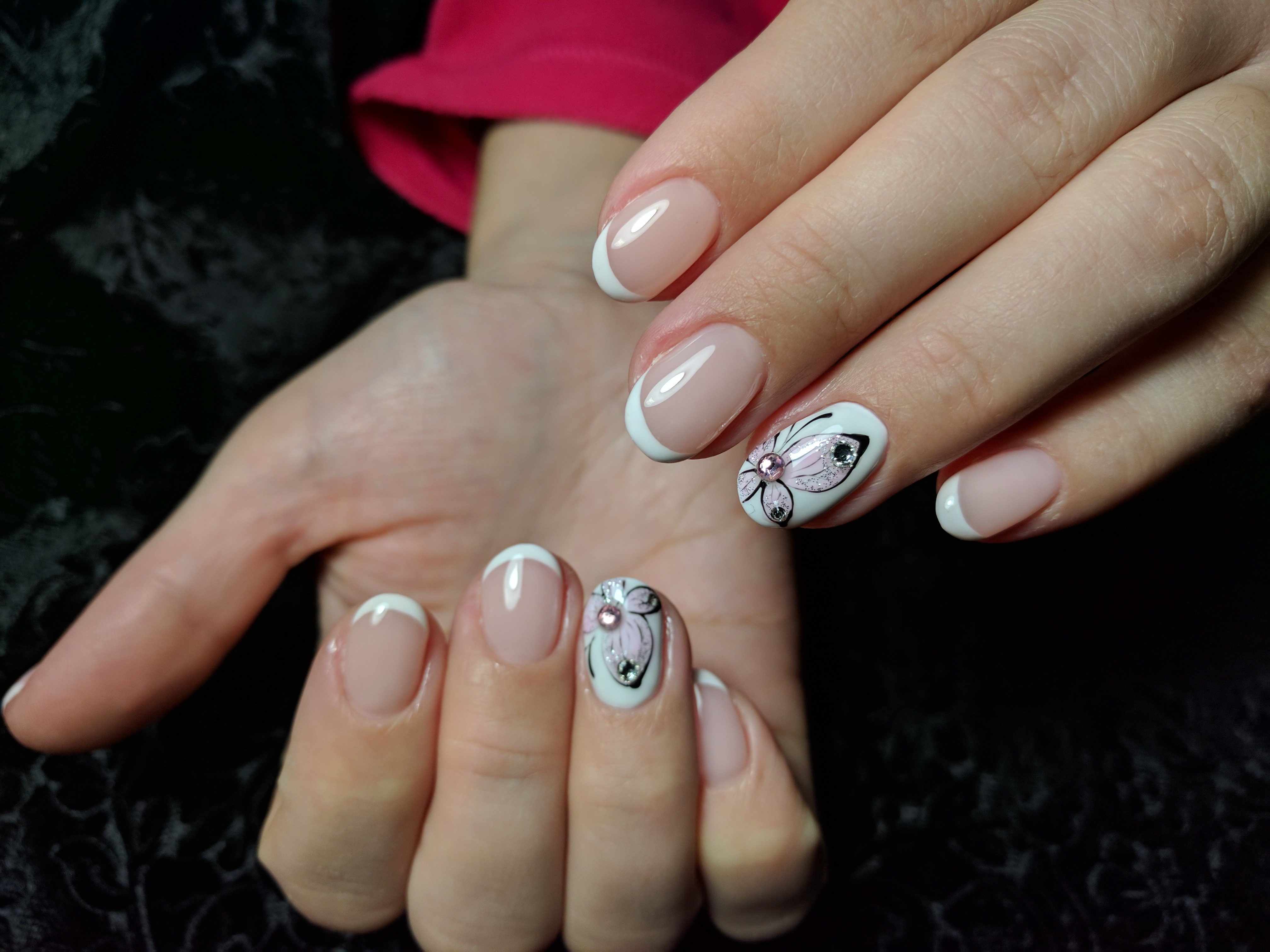 Идеальный френч на овальные ногти! А дизайн цветочка получился даже лучше оригинала, который показывал Кате❤️