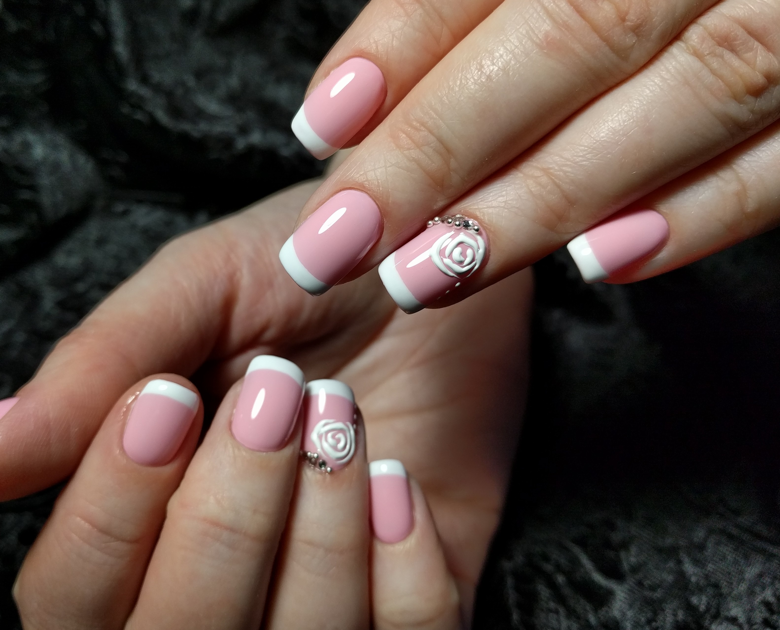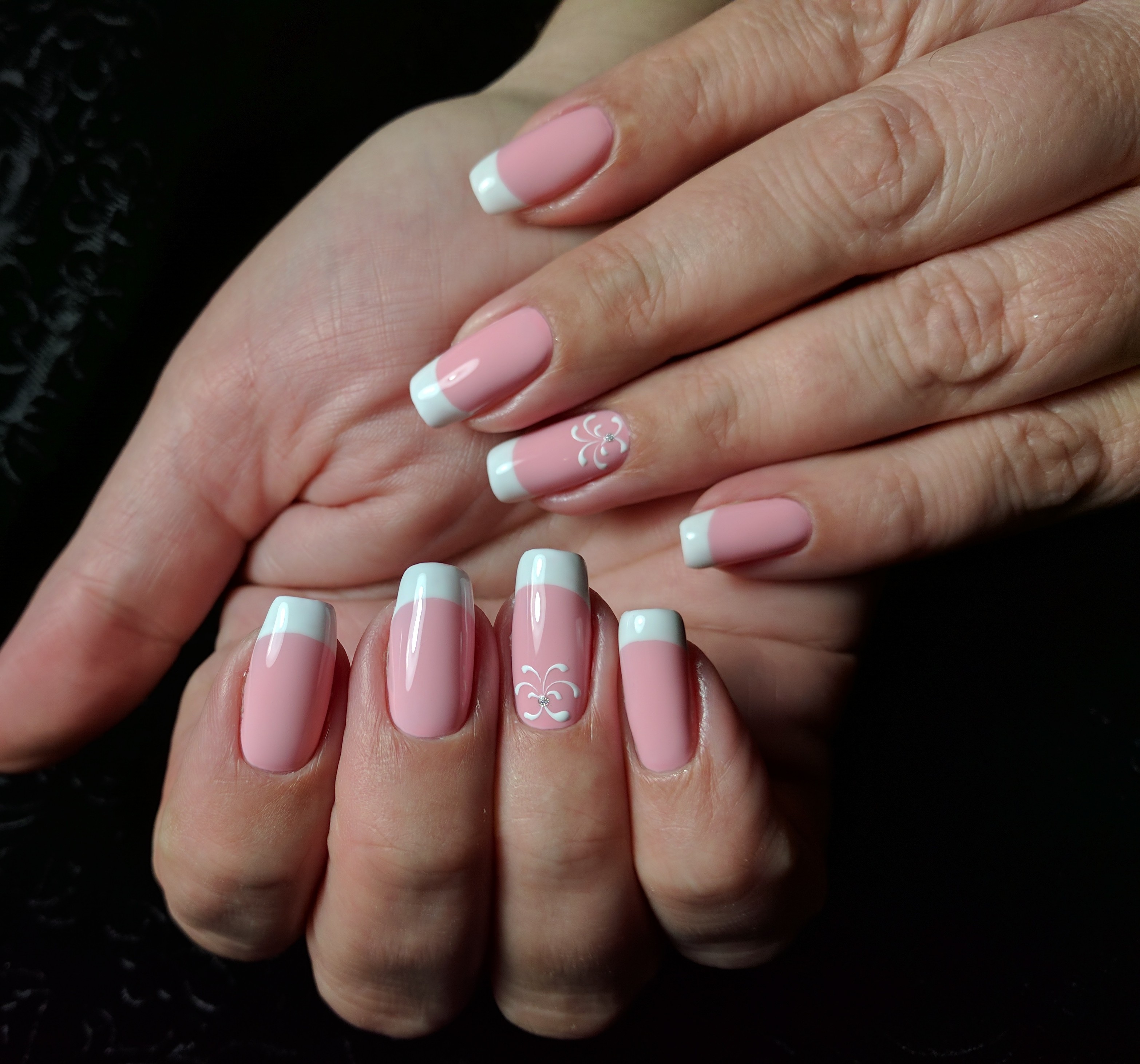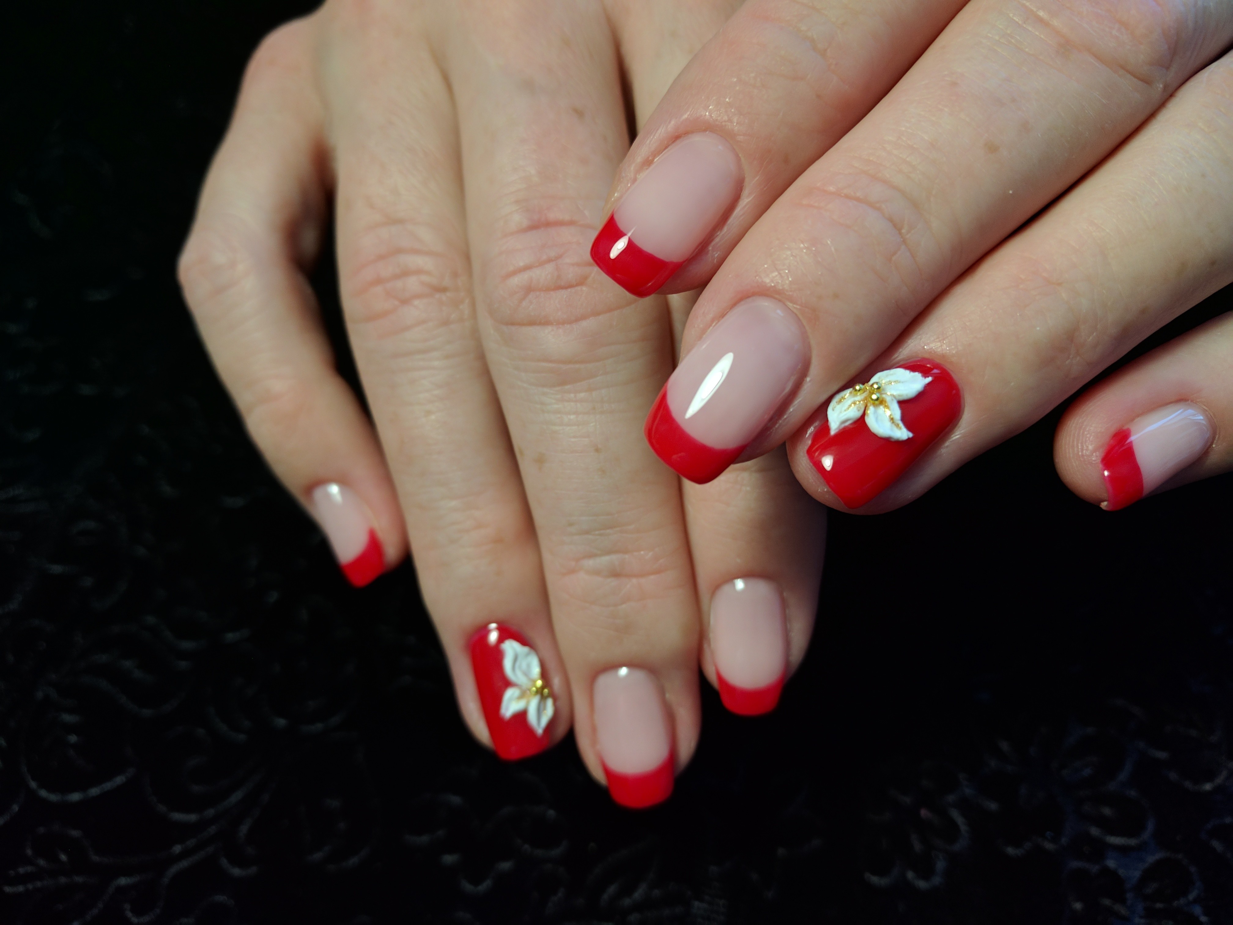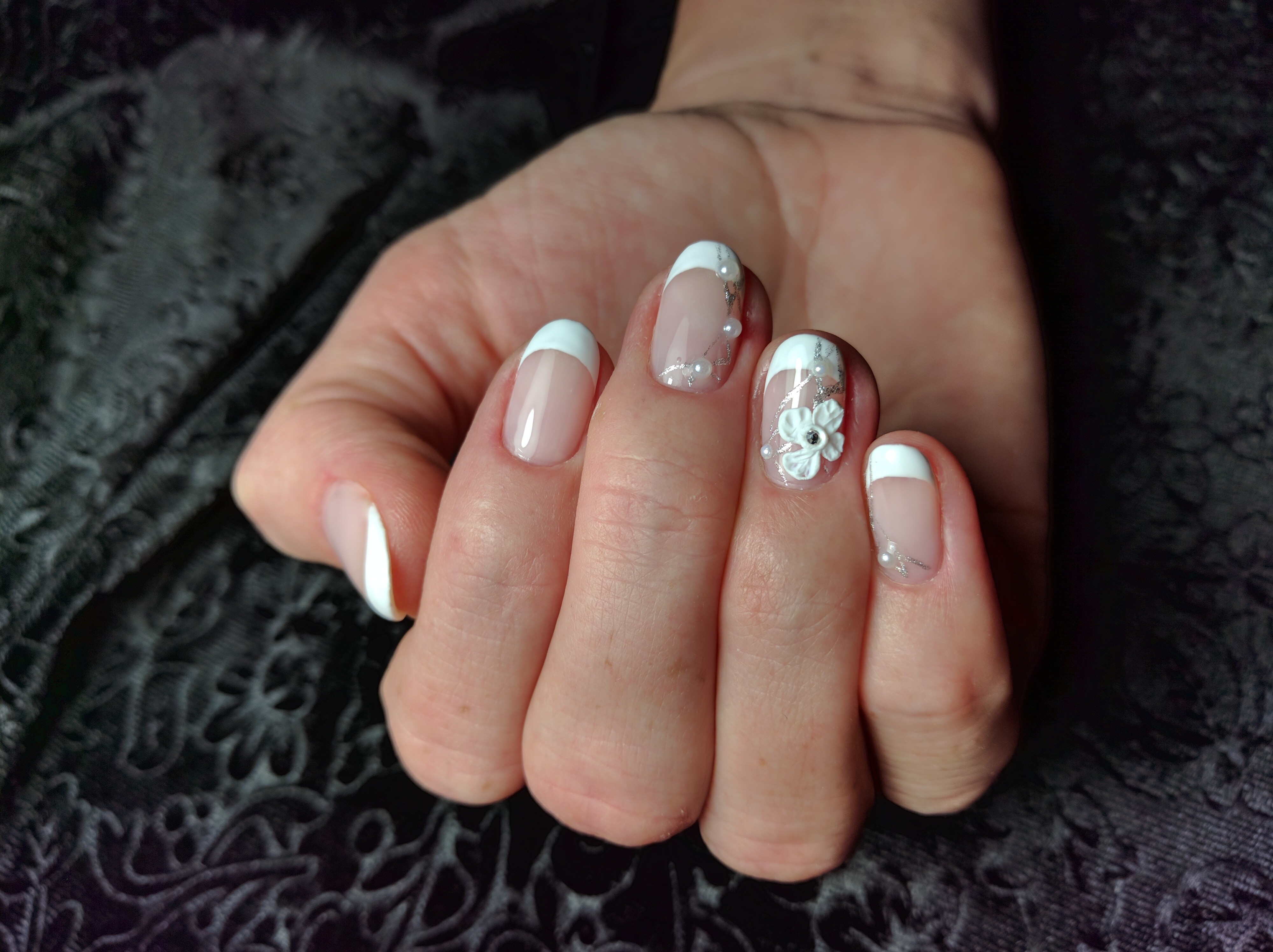 Идеальный френч на овальные ногти! А дизайн цветочка получился даже лучше оригинала, который показывал Кате❤️