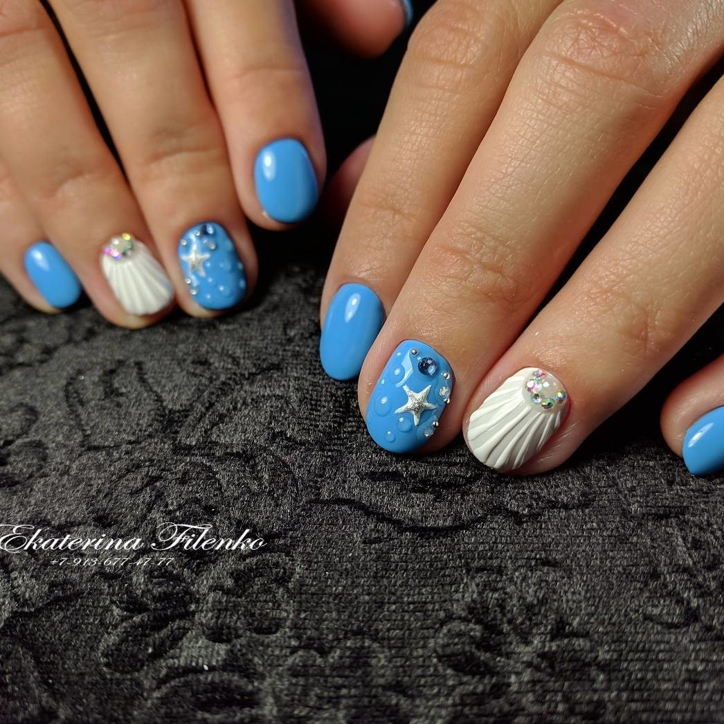 Отличный морской маникюр от профессионального мастера Екатерины! Мой маникюр на море уже ровно неделю, а до этого ещё 6 дней в Омске. Спасибо большое Кате за интересный и неповторимый дизайн, яркую морскую звезду)) Когда пришла на сеанс маникюра, толком не знала, что именно хочу, знала только что морскую, пляжную тематику, в интернете какой-либо конкретный дизайн не впечатлял. Катя создала для меня необычный и свой морской дизайн! Так что в предверии разгара сезона отпусков маникюр, созданный Екатериной Филенко, очень порадует! И как мастер очень профессиональный и приятная, притягивающая, добрая, милая девушка!